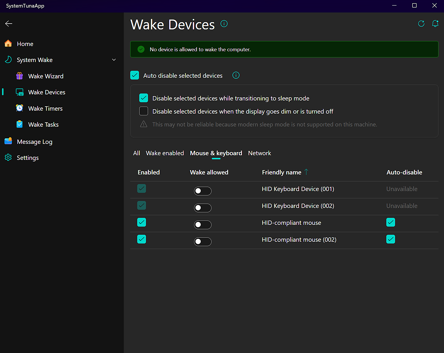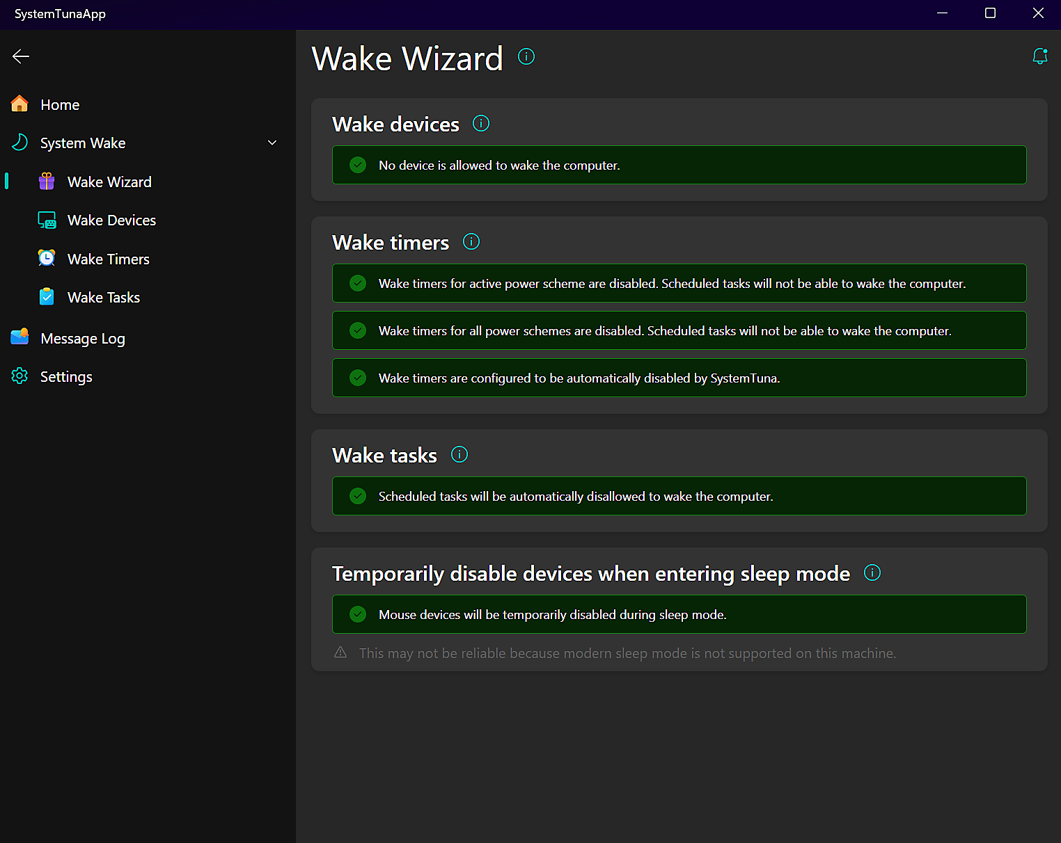 SystemTuna is an app for Windows 11 and 10 that helps prevent unwanted system wakes from sleep mode.